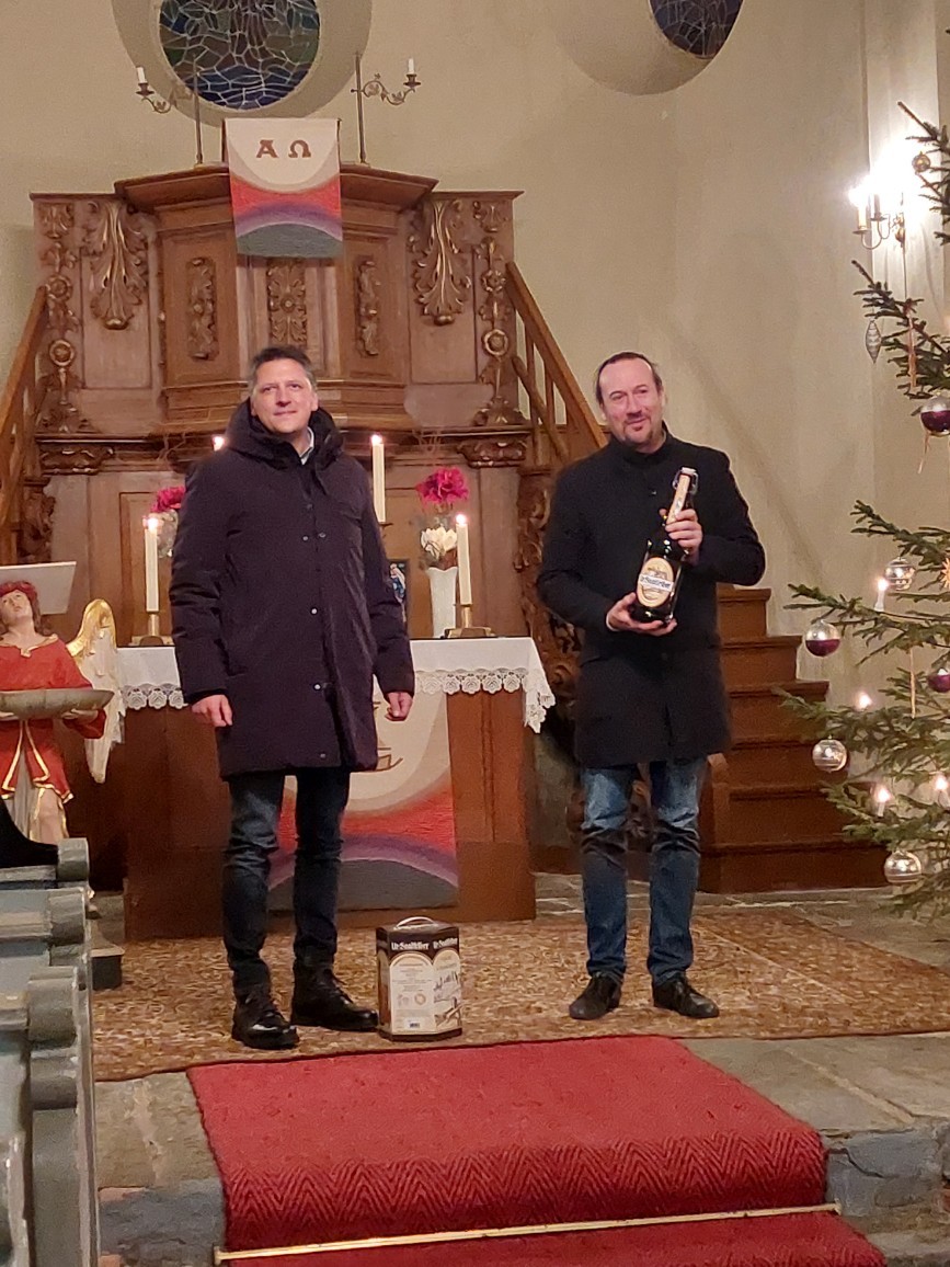 Am Samstag, 6. Januar, machte die OrgelFahrt "Zum Neuen Jahr " 2024 auch Station in der Aquilakirche Reichmannsdorf. Eines von 10 Konzerten fand somit im Pfarrbereich der veranstaltenden Kirchengemeinde statt. Schirmherr Maik Kowalleck nahm dies zum Anlass Kantor Grünert nachträglich zum runden Geburtstag zu beglückwünschen. Seit nunmehr mehr als 15 Jahren bereichert unser Projekt den Kulturkalender des Landkreises und zunehmend darüber hinaus.. Dafür dankte Herr Kowalleck Kantor Grünert und dem Team "OrgelFahrt" der Kirchengemeinde. Das Team kann diesen Dank gern unterstreichen. Matthias Grünert bezeichnet Hoheneiche gern als seine "Wahlheimatgemeinde" und Herr Kowalleck unterstützt unsere OrgelFahrt sehr effektiv auch über die hiesige Region hinaus. Wie kann ich helfen? Was braucht Ihr? Er fragt bei uns an! Dies ist bemerkenswert. C. Linke
